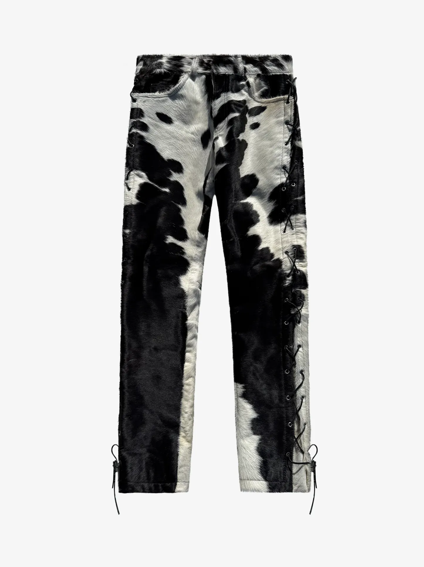 - Natural cowhide pattern – each pair is one-of-a-kind