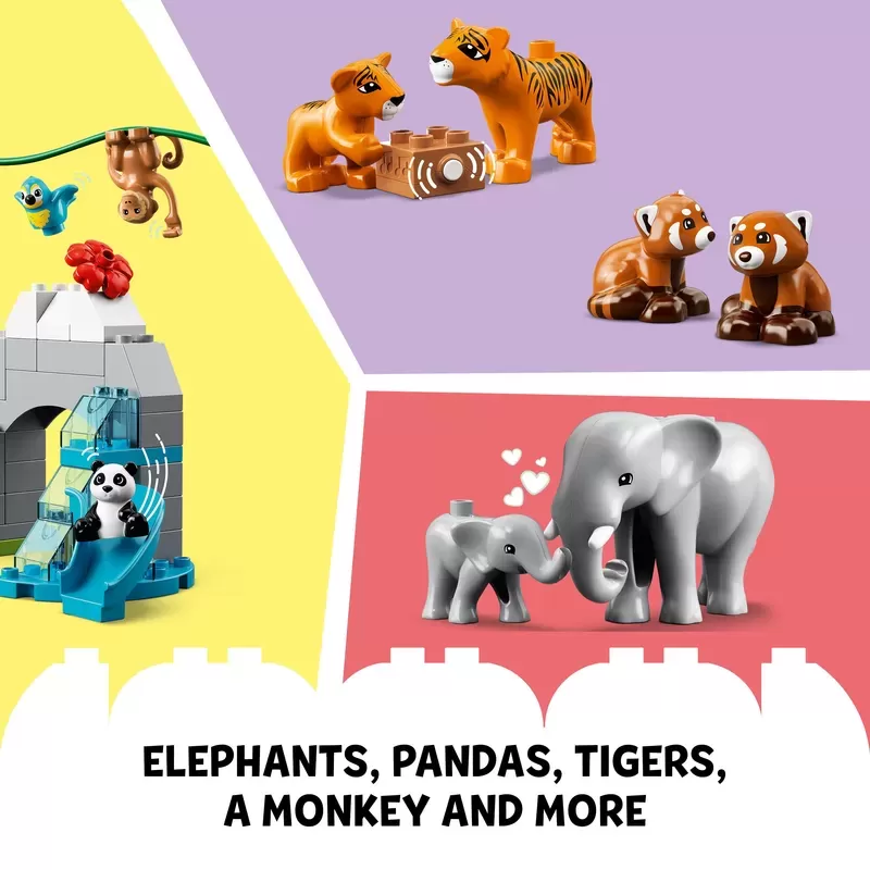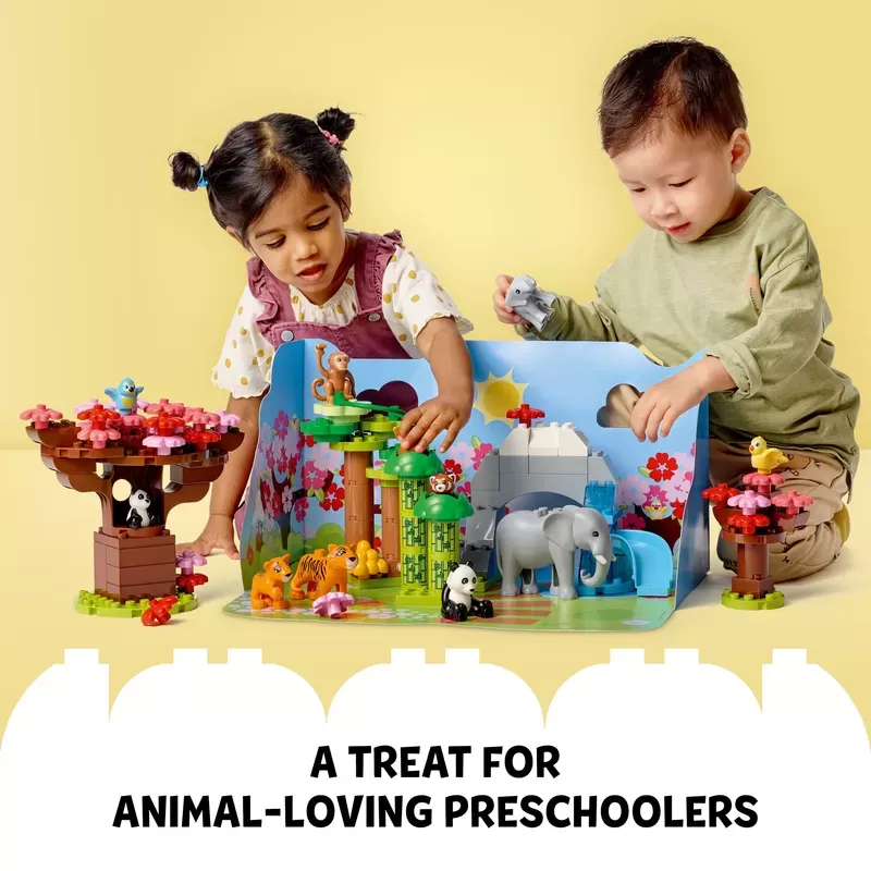 Explore Asian wildlife – LEGO® DUPLO® Wild Animals of Asia (10974) is a detailed recreation of Asia’s natural habitats, with a cast of native animals, plants and trees as well as realistic sounds