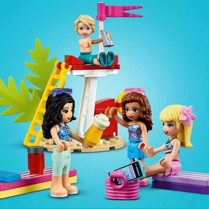 LEGO? Friends Stephanie, Emma and Olivia buildable mini-doll figures are along for the ride and Mason is on hand as a lifeguard. New-for-June-2020, Pinky the flamingo figure brings a splash of color.