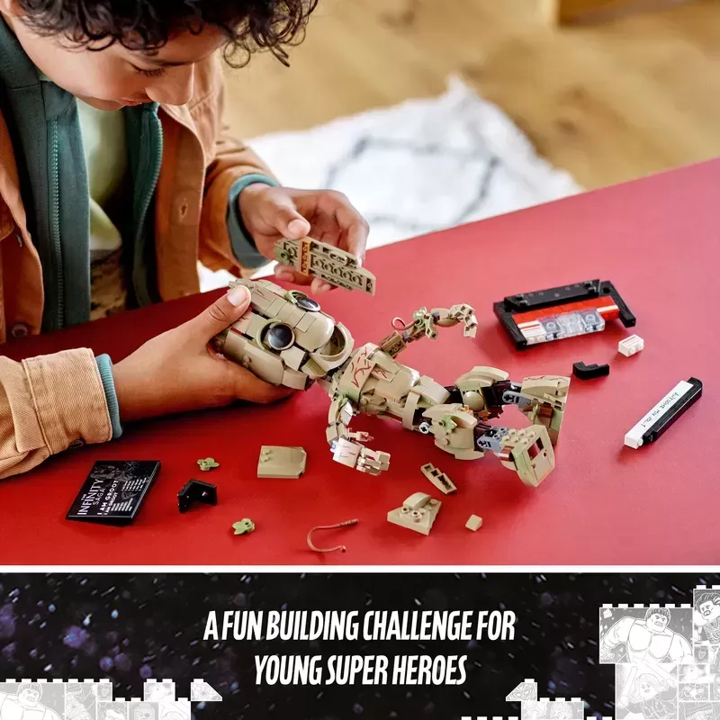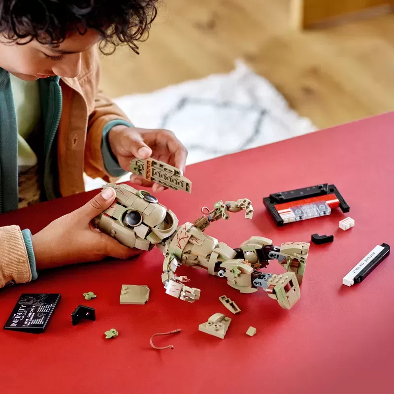 Iconic Marvel character – Kids build their own Baby Groot, from Marvel Studios’ Guardians of the Galaxy Vol. 2. The set also includes a pretend cassette tape and display nameplate